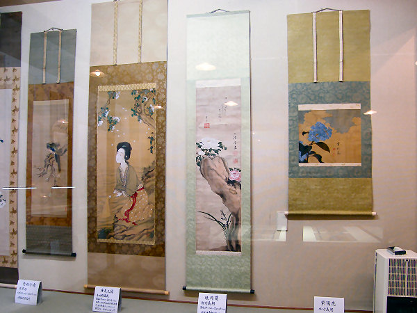 武具甲冑などはもちろんのことですが、江戸時代に天才発明家ともいえる平賀源内が西洋画の技法を伝えたことで、この地で花開いた秋田蘭画は必見。右の2つがそれで、角館城代である佐竹義躬が描いたもの。秋田蘭画は、日本画に遠近法など西洋画の技法を取り入れたのが特徴です。