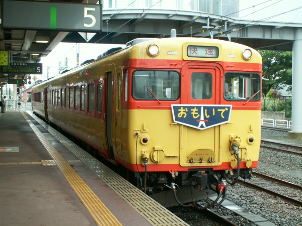 米沢駅に到着。ここにキハ52形とキハ47形の国鉄色がそれぞれ2両ずついました。乗車できなかったのは残念です。また、キハ58系国鉄色編成は新津運輸区の車庫に、キハ58形新潟色は今泉駅で行き違いをした普通列車の中間に挟まれていました。