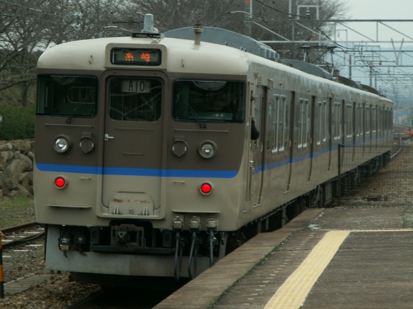 昨年秋以降、223系の追加投入により余剰となった221系で山陰本線京都口(嵯峨野線)の113系を置き換え、さらにその113系で広島地区の103系を置き換える…という二重の玉突きでの転属が行われています。この113系F−06編成もその流れでやって来た編成ですが、転属にかかる費用の節約のためなのか前面幕や車両番号の標記に急ごしらえの感が見て取れます。