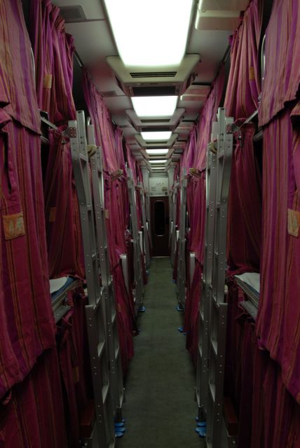 そして、ちょっとだけB寝台の中を拝見し昼間のった583系は夜はこんなベットにもなるんだよって息子に説明しました。