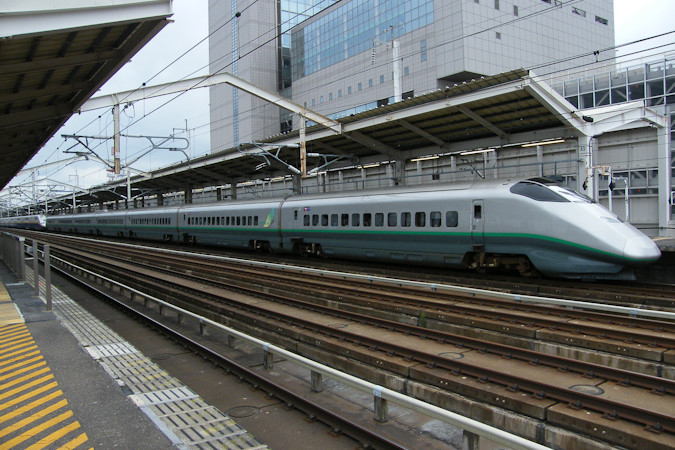 気持ち的には『400系来い〜』と念じていましたが、残念な高輝度放電灯(HID)の明るい光が見えて、あ〜E3系だぁ。。。ダメだぁこりゃって思ってしまいました。でも、偶然にも席に座る事ができたので、しっかり新型車両を堪能する事にしました。