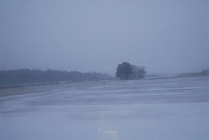 次に目が覚めたのは秋田到着前。ここで、2割くらいの人が降りたようで、しっかり長距離帰省の役割をになっているようですね。秋田までくるとまわりが明るくなってきて当たりを見渡せるようになったものの、風こそ無い物の結構雪は舞っていて雪国に来たんだなぁって改めて思いました。