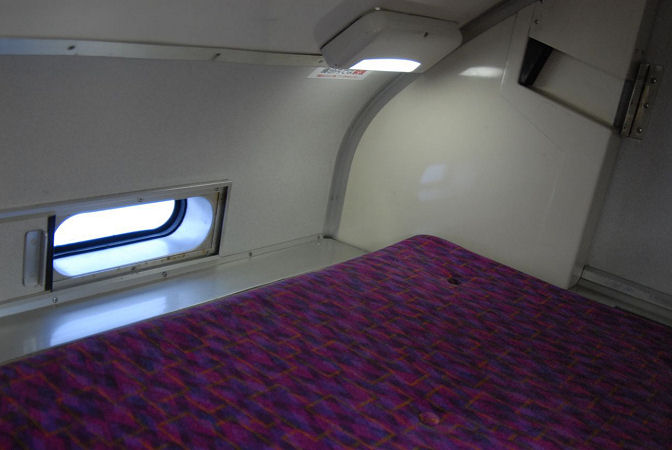 でも、やっぱり、車内に3段のベットは少々無理があるような感じがしますが。。。カプセルホテル慣れしている人ならなんら苦労しないのかもしれないですが、朝になってやっぱり天井に頭をぶつける音が結構聞こえてくるので思いはみんな同じような気がします。