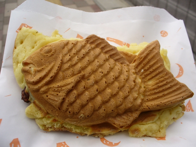 ここで降りたからには鯛焼きは欠かせません。焼き型からあふれるほどのボリュームで、なかなか美味しいです。当然観音でも入場券を購入しました。