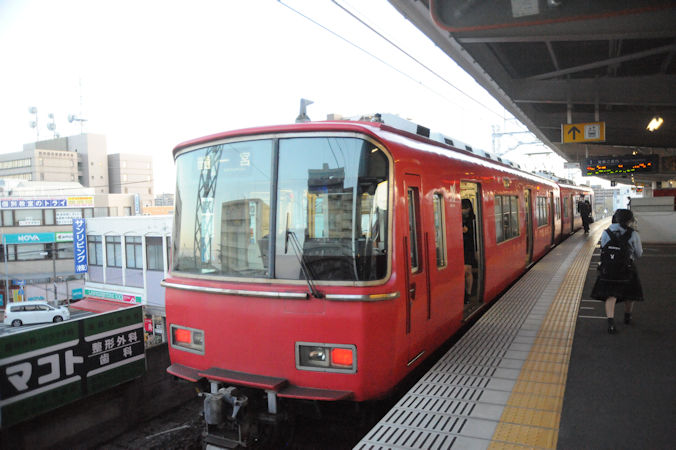 はじめのうちは複線だった線路も途中から単線になり、さらにあたりも暗くなり景色も分からなくなります。ですがここでもビックリ!あたりが暗くなっても運転席側ではない運転室のカーテンを下ろさないで運転してくれるのです。 ん?このフレーズ、前回の名鉄旅で書いたかな?それはさておき、帰りの通勤通学時間と重なったためか終始立ち客がいる状態で名鉄一宮に到着しました。