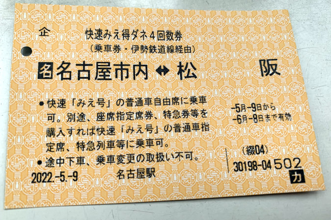 ここで、一旦JRとはお別れして、近鉄に乗車します。 松阪から名古屋まではお得な切符が見つからなかったので普通に乗車券を購入します。