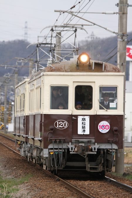 復路の追っ掛けはここで終了。続いて仏生山工場北方に移動し、高松築港からの回送と留置されている300や500を撮影。うーむ茶色い。
