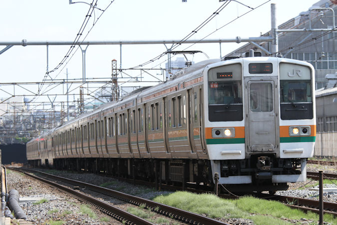 最後は尾久駅で留置されている211系田町車と脇を通過する高崎車、そして開業まで1週間となったスカイツリーを絡めて撮影。この光景もほんの僅かの間でしょうな…。
