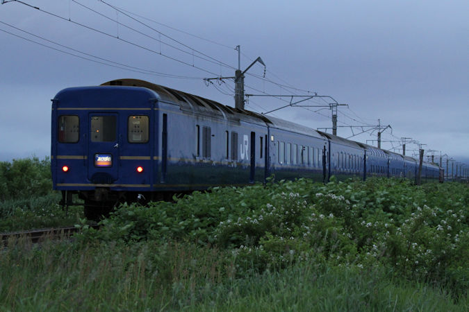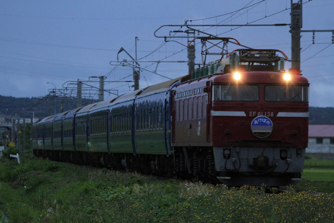 それでは21日。左堰〜奥内にて「はまなす」を撮影。有名な場所ですね。特に何の変哲もない正調編成ですが、それがいい。