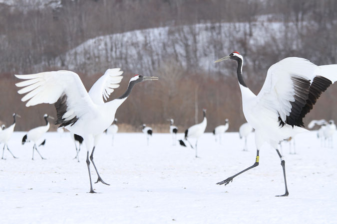 まずは釧路へ。昨年に比べて天候が曇りな分、空を飛ぶ姿があまり映えないということで地上のタンチョウメインでの撮影となりました。