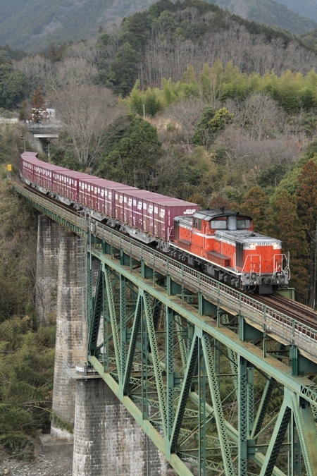 昨年訪れて場所は知っていたものの、紀勢貨物の撮影は最初で最後となる宮川橋梁。昔は順光となる進行方向左側からの撮影も出来たようですが、今は木が茂りこの右側からのアングルに限られるようになってしまいました。