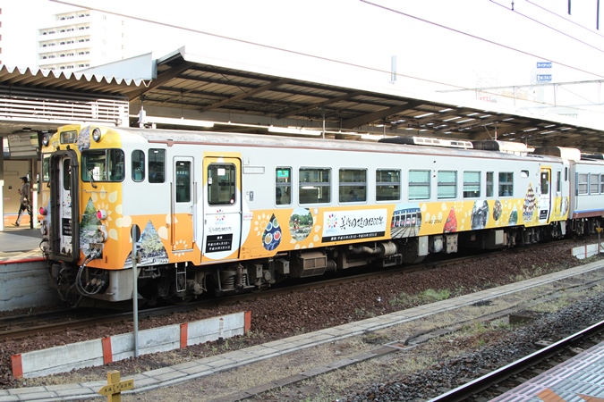 高山本線のキハ120形。2両目は沿線の名物が描かれていました。