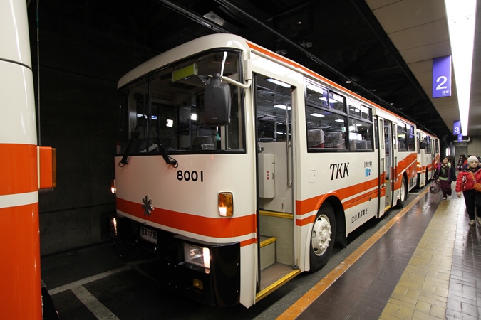 まずは右に写っているバスで扇沢駅へ向かいます。