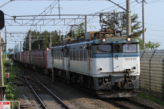 早朝は曇り気味だった空模様も陽が高くなるにつれて晴れ上がっていき、3091レの頃には最高の光線に。コンテナの積載率も良く、少数派となる赤スカート装備の3号機で言うことなしの1枚が撮影できました。