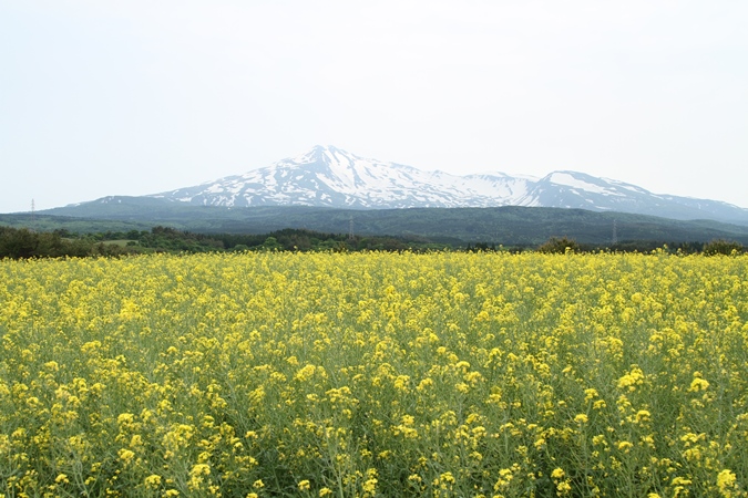 山の中を横切り、由利高原鉄道の終着駅、矢島へ。駅の売店のおかみさんに勧められ、菜の花畑を急ぎ足で散策。