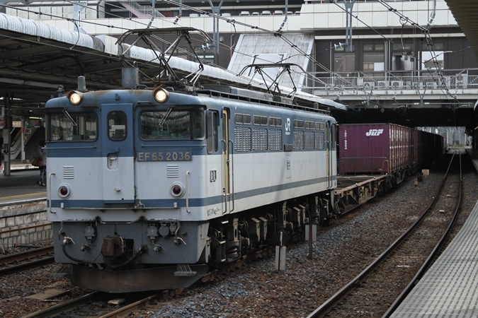 3055レには現役最若番のEF65 2036が入りました。EF65形自体が先細りなのにいつまで使うやら。絶滅しかかったEF66 0番台も気付けばやたらと復帰、瀬野八ではEF67 1が運用復帰したらしいですし、JR貨物の考えがよく分かりません。