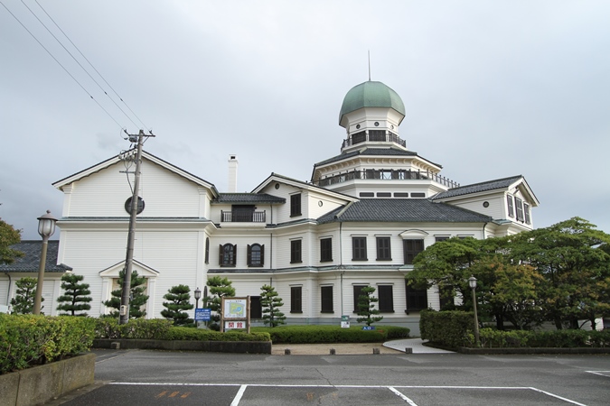 三国駅の背後の山上にある、三国町の資料館とも言える「みくに龍翔館」を、外観だけ撮影。この建物、建築自体は昭和56(1981)年なのですが、オランダから来たお雇い外国人のG.A.エッセルが明治12(1879)年にこの地に建てた小学校を復元したもの。