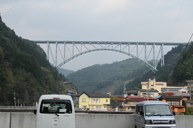 ちなみに高千穂鉄道の他の廃線跡ですが、全く予定に組み入れていませんでした。と言うのも、R218旧道こそ五ヶ瀬川・高千穂線に沿う形だったのですが、ご多分に漏れず酷道でかつ延岡市と連絡する幹線道路だったため早期にバイパスが整備。上記写真の青雲橋ような深い峡谷を跨ぐ橋を大量に架け、旧道よりも遙かに高いところを通過していくために廃線跡を探索するにはいちいち細い道を降りていかなければならず、非常に手間がかかってしまうのです。