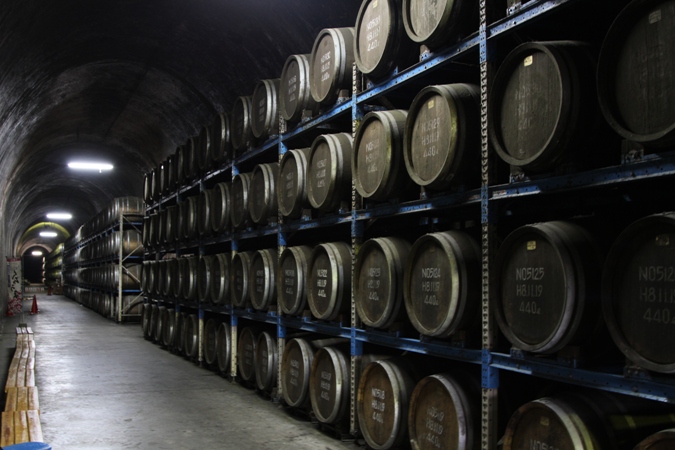 右側には焼酎が詰まった樽がズラリ!手前にある樽でも平成8年に作られたもののようで、今年で18年。奥の方には一体何年ものが眠っているのやら。