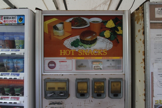 ここは、日本最南端にして九州で唯一のうどん自販機と、西日本では絶滅寸前のハンバーガー自販機が並んで稼働している場所です。