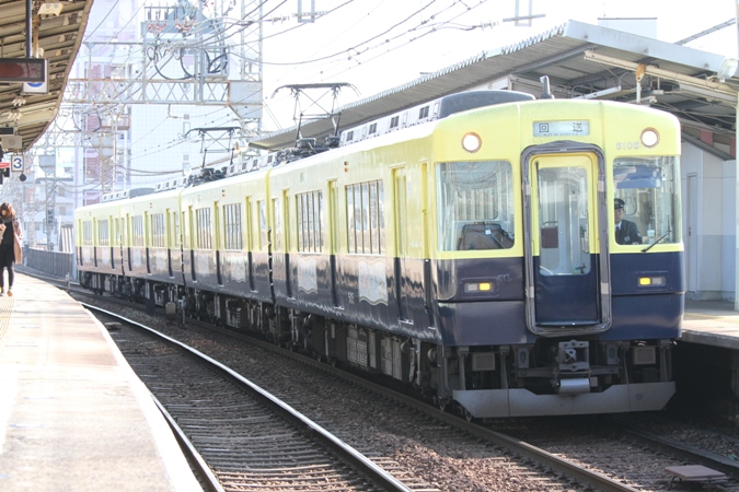 1230系。阪神乗り入れ対応改造編成だそうで、この列車も阪神線からの直通便かも知れません。