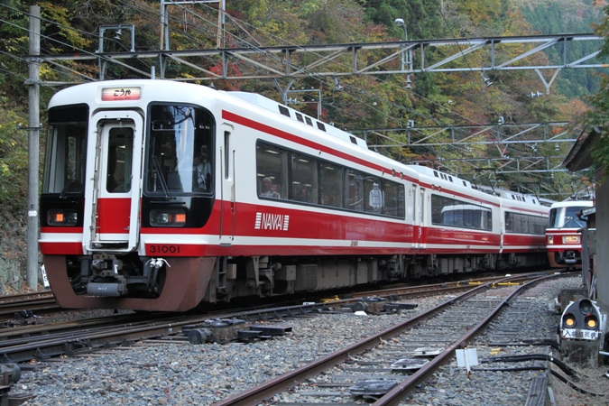 「天空」の撮影をすべく、駅名の由来にもなった極楽橋の脇へ。まずは31000系「こうや」が出発していきました。右に見えるのが我々が乗車してきた「こうや」。