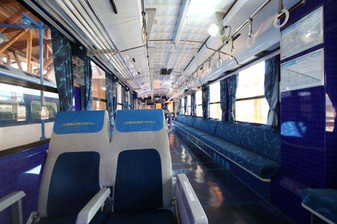 車内も公開。北宇和島→宇和島で乗車したことはありますが、こうじっくり座ってみるのは初めて。模型もプレスリリース通り、新しいものに差し替えられていました。
