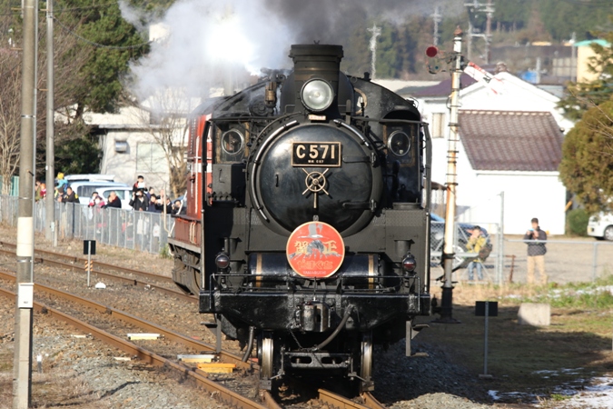 ヘッドマークのアップ。 例年だとこの列車はC56形単機かDD51形との重連牽引が続いており、C57形での牽引は実は14年ぶりだったそうな。
