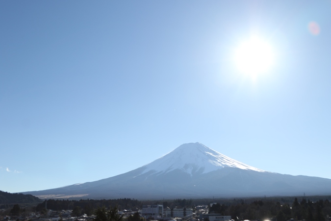 駅ビルの屋上が展望台になっているということで上がってみましたが、なるほど目の前には雄大な逆光の富士山。これほど目前に富士山を見たのは初めてですが、なるほど「フジヤマ」として外国人にも人気になるのが頷ける絶景です。