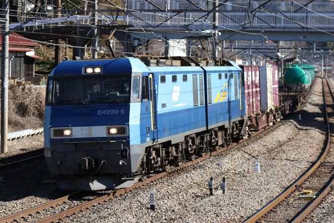 後続の普通電車が来るまでの間に83レも通過。コキ50000形とタキ1000形で組成された特徴的な編成の列車でした。