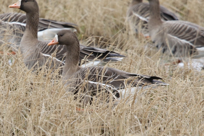 やはり、天然記念物のマガンでした。通常のマガモやカルガモはあまり群れないので遠目に見てもマガンの群れと分かります。