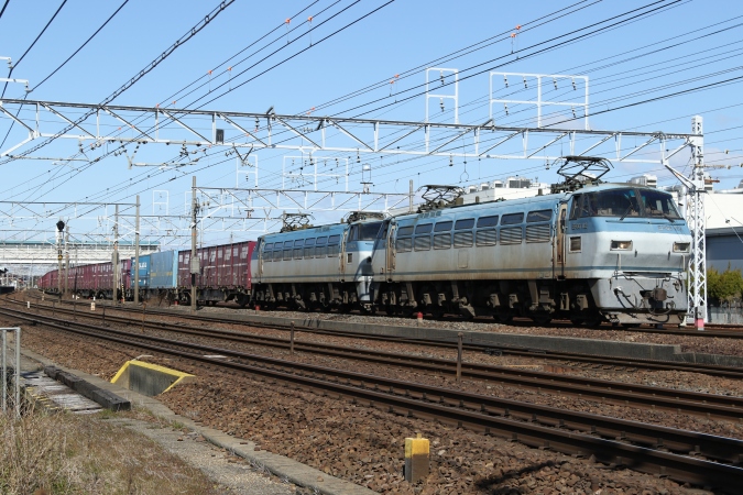 数本のEF200形貨物を撮影し、お目当ての3091レが通過。以前に0番台重連が走るとのことで緊急出撃した際に狙って以来ですが、この日は100番台同士の重連でした。これはこれで。