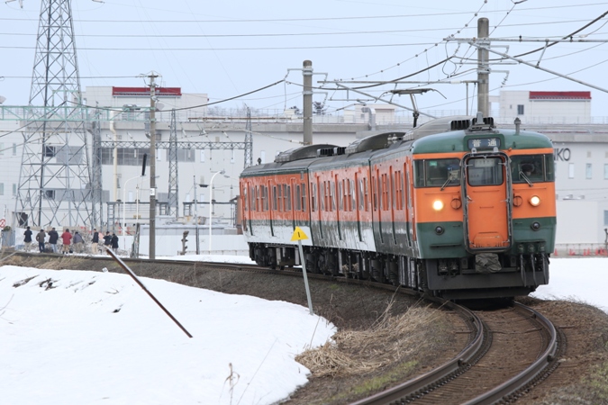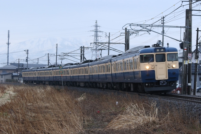 そこへやって来たのは長野色ながらしなの鉄道のステッカーを貼った115系。どうやら長野〜妙高高原で乗務員訓練を行っているようで、この翌日にも見かけました。