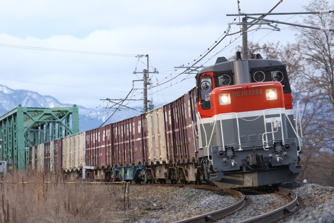 現地へは一番乗り。直後に1名と少し経ってから2名増え、4名でまずはDE10形牽引の89レを撮影。篠ノ井→北長野への送り込みを兼ねた、比較的珍しいDE10形の本線貨物です。