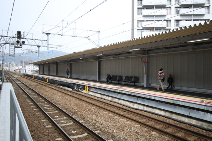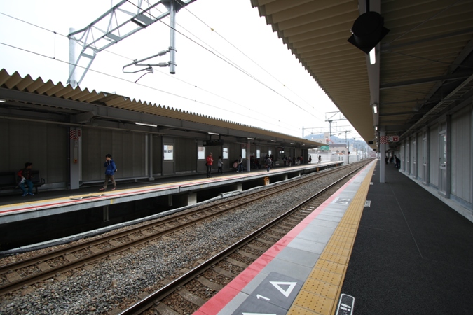 1番ホームのある下り線側の駅舎。JR駅は天神川と同様に上下線で駅舎が別れており、改札内での上下線の行き来ができない構造です。