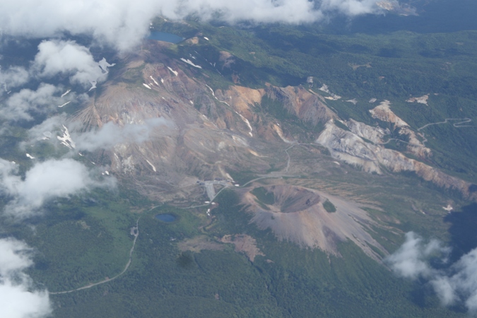 軽くウトウトした後、眼下を見ると立派な山が見えたので撮影。あとでGoogleマップで調べたところ、東吾妻山と吾妻小富士とのこと。うーん…先月地上から見てるはずなんだけどなあ…。