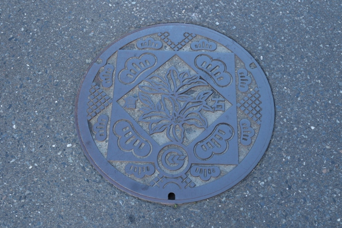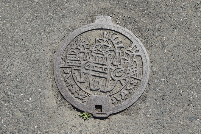 まずは、八戸市豊崎地区で見つけたマンホール。八戸市の市街地にあったものとは別のデザインと言うことで急遽車を停め撮影。集落排水という形で下水道整備がなされている場所は独自のデザインを採用している場合も多く、これらまで撮影しようとすると本当に大変な作業です。