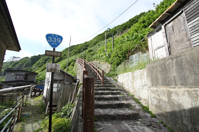 それと、竜飛崎の名物とも言えるのがこの階段国道こと国道339号。レンタカーのナビでは分断されており該当区間は表示されませんでしたが、れっきとした国道です。