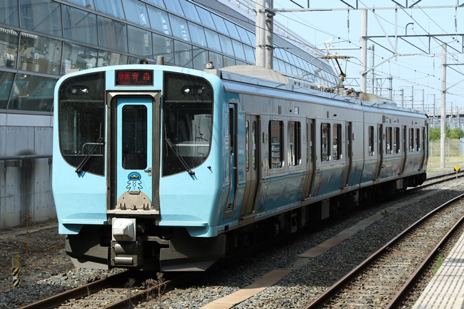 まずは平内町のマンホールを西平内駅付近で撮影。町の花のツバキを描いたシンプルなものでした。 清水川駅でちょうど快速を撮影出来そうな時間だったため向かっていたところ、ちょうど駅に到着したところで目の前を青い森703系が高速で通過。本当にタッチの差でしたが、これの折返しで八戸に14時過ぎに到着するのでその時に狙うことにします。
