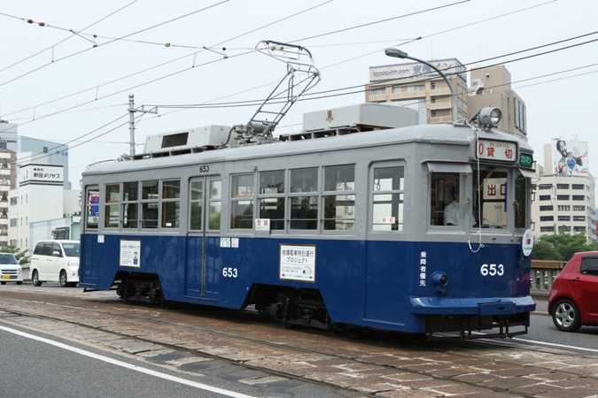 出発式典を終え、大洲通りを横切るところを撮影。後ろに801号が続きました。この光景もあと10年もしないうちに姿を消すことが決まっています。