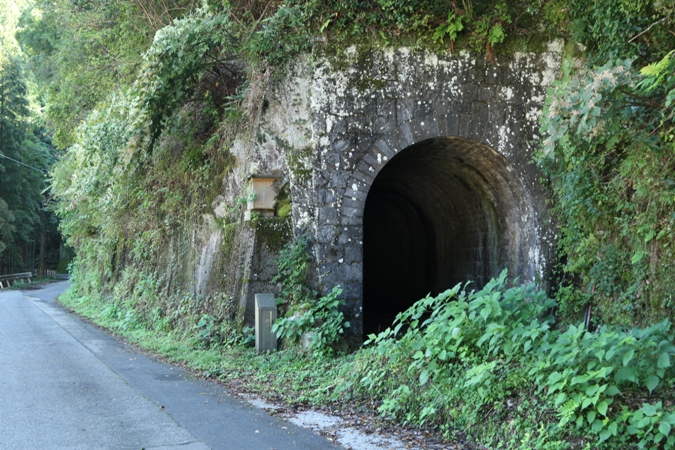 そして馬路地区に到着し、少し探し回ってようやく五味(ごみ)隧道に到着。明治44年の路線開通時の建築。馬路地区の入口にあり、麓から登ってきた列車に便乗していた乗客はトンネルを抜け眼前に広がる村の風景を目にし「帰ってきた」と実感していたそうです。
