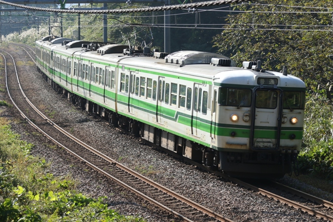 越後川口〜小千谷の有名なポイント。到着後間もなくして115系の6連が通過。