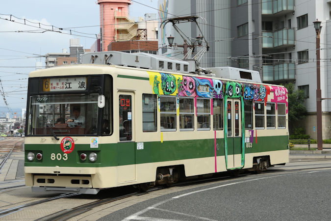続いて鷹野橋電停付近へ。まずは3000形(3003号)。