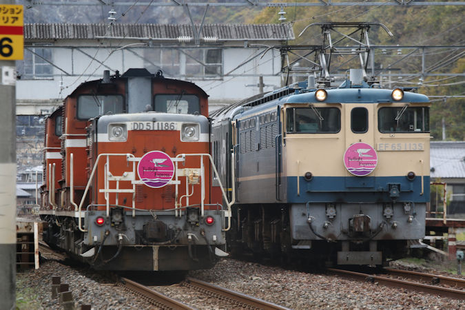 ▲2015年12月5日〜19日・27日 「サロンカーなにわ」「トワイライトエクスプレス」と伯備線貨物