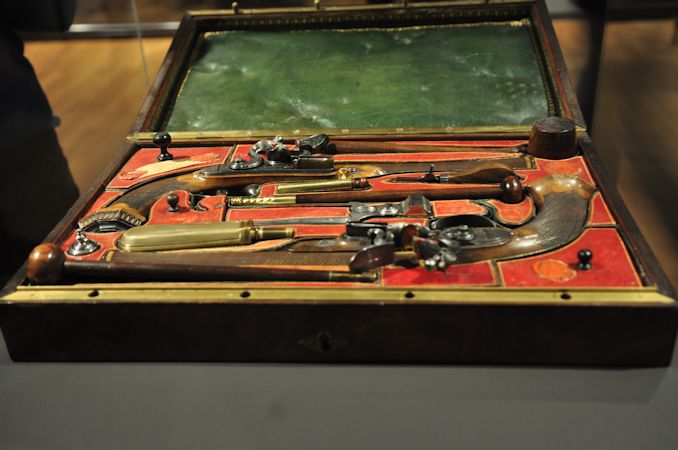 アムステルダム国立美術館所蔵。こちらの二挺ペアになったピストルは、ワーテルローの戦いでナポレオンが使用した(かもしれない)もの。ナポレオンの道具箱を戦いの後に回収した時、その中にあったそうです。