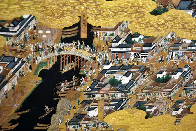 こちらは日本橋の様子。たくさんの小舟が停泊していますね。