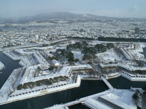 五稜郭 1864年に完成した、日本で最初の洋式城郭。箱館奉行所が置かれた星型の要塞ですが、まさか内戦で使用されるとは、誰も思っていなかったことでしょう。(撮影:デューク)