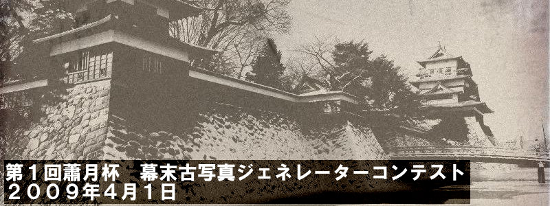 http://labs.wanokoto.jp/olds を使用した写真コンテストを、雑談掲示板にて開催しました。この幕末古写真ジェネレーターというのは、写真を幕末〜明治初期に撮影したかのように変換してくれる面白いツールで、これを利用して「今撮影された歴史的建造物や昔の面影を残す風景をまさに昔撮影したような感じにやってしまおう」というのが、第1回のテーマでした。 多数のご応募をいただきましたが、4月1日になりまして、まずは最優秀作品として所長賞と蕭月賞を発表したいと思います。