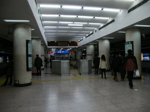 地下鉄1号線に乗り軍事博物館駅から復興門駅へ。さらに地下鉄2号線に乗り換えます。