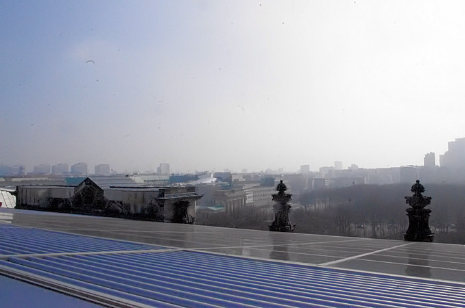 ブランデンブルク門のすぐ北にあるのが、ドイツ連邦議会議事堂。元々はドイツ帝国議会議事堂として、1884年から1894年にかけてネオバロック様式で建設されたものですが、第2次世界大戦にて屋根部分が焼け落ちてしまいました。